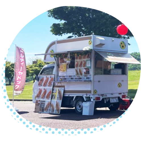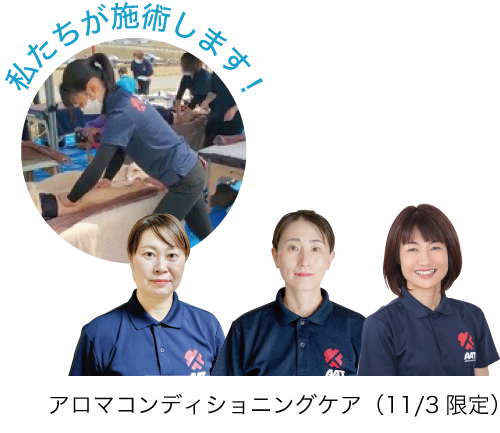 地元事業者の出店によるマルシェを開催します。11/3には、無料のアスリートアロマケアの施術ブースや記念缶バッジの作成ブースが、11/4には、小椋神社の自転車お守りの特別出張授与ブースがあります。