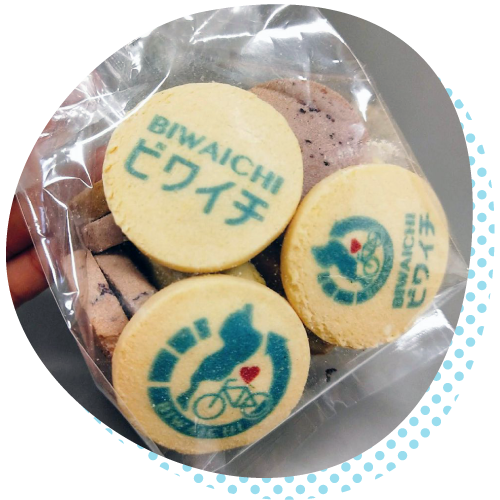 また、日替わりでビワイチのロゴマークを使用したビワイチ商品の販売も実施しています。ぜひビワイチの記念にどうぞ!-