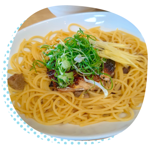 長浜の郷土料理として親しまれる「焼鯖そうめん」をアレンジしたパスタ。