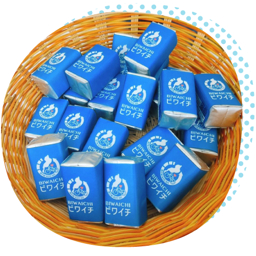 小ぶりで食べやすいサイズのようかん。糖分を摂取したい時やビワイチのお土産にもぴったり。もりやま作業所から販売。