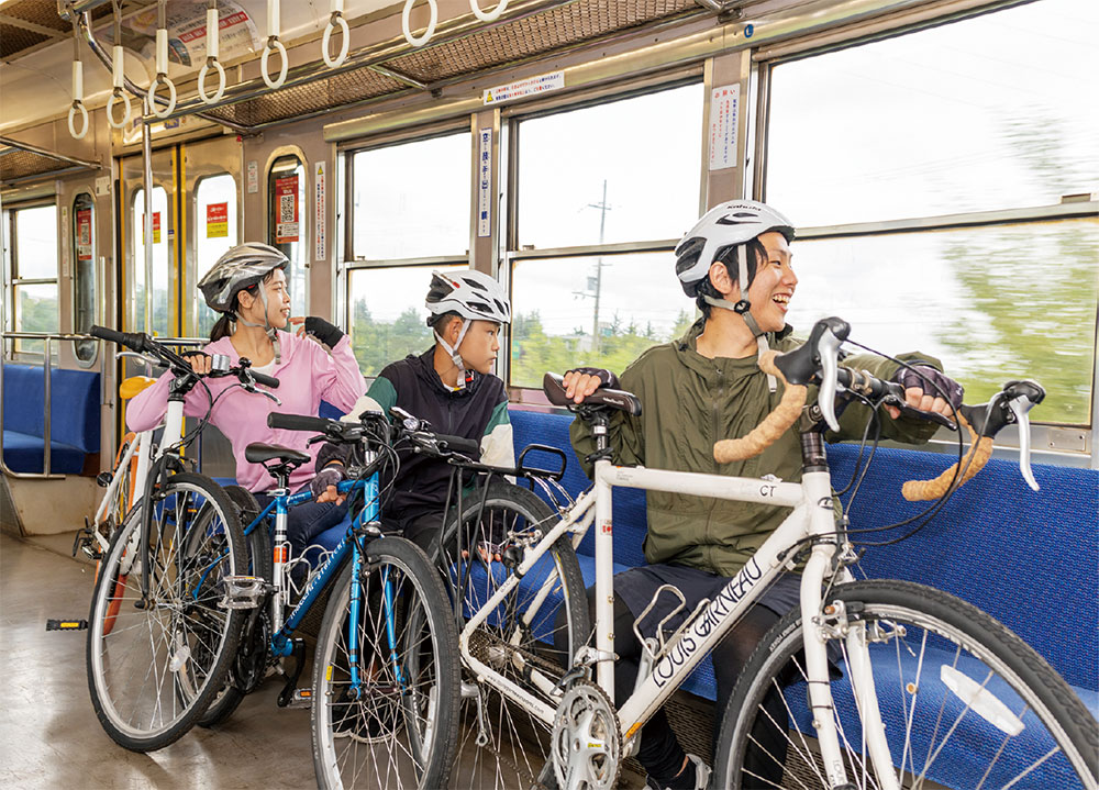 「ビワイチの子」ツアーでサイクルトレインが初登場! 自転車ごと一緒に電車に乗り、目的地を目指すわくわく感、そしてサイクルトレインを降りた後に自分でペダルをこぎ、ゴールを目指す爽快感の両方が味わえるツアーです。